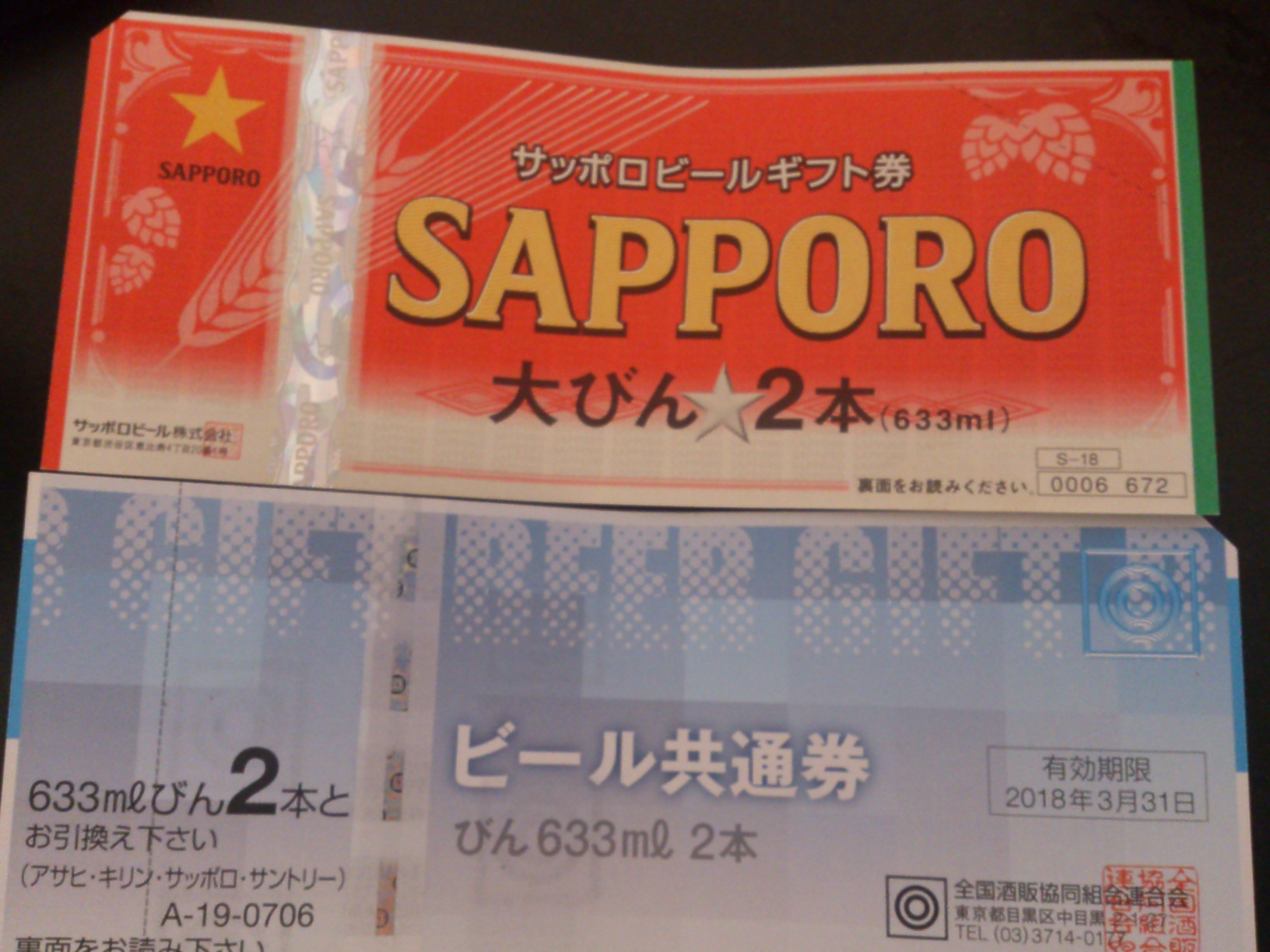 →ビール共通券はお友達から結婚祝いでプレゼントされたもの
