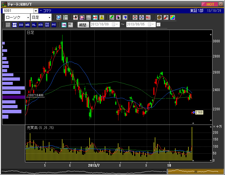 今日はコマツの下落が目立った。8%を超える急落である。