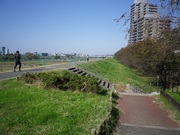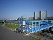 サイクリングロードだと信号がないし、堤防の上は眺めがいいので走っていてとてもいい気分。ジョギングしている人にはちょっと神経を使いますけど。