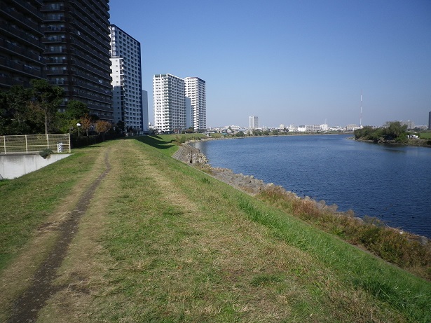 さらに川崎側を走る。これは上流側を写したもの。マンションばっか。日陰は寒い