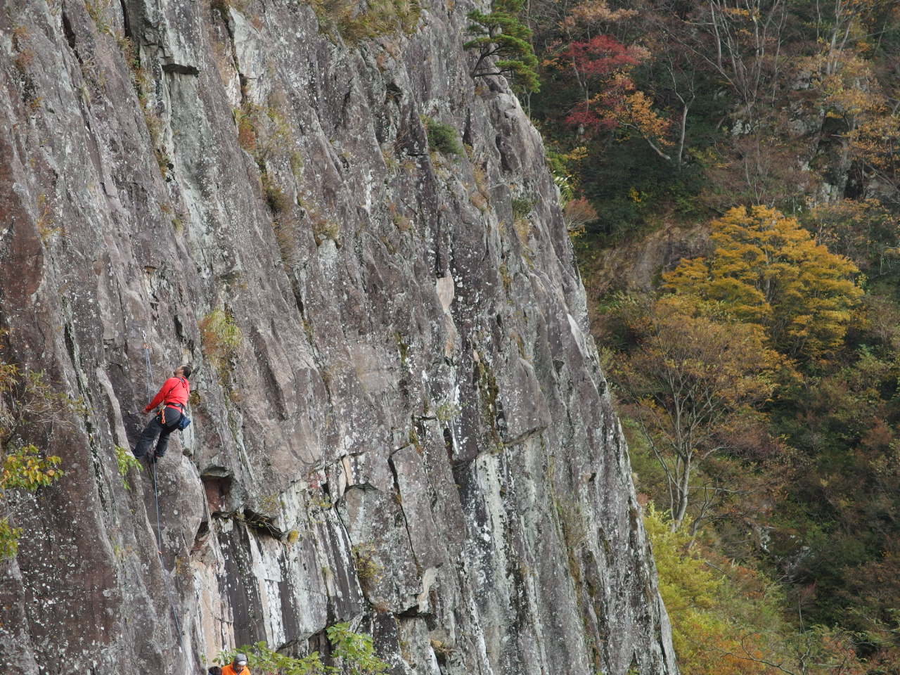 いろんな紅葉に包まれた岸壁に登ってる人って・・・・・・真剣なようでけっこう下の見上げる人と会話を交わしてます^^;