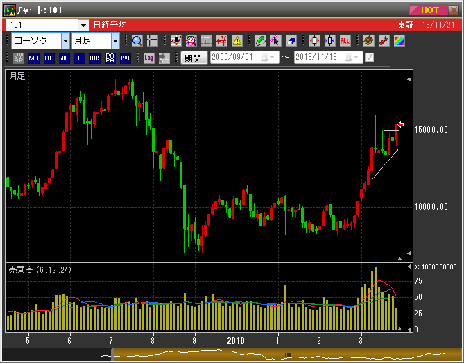 現時点での日経平均11月の月足は見事に節目を超えている。