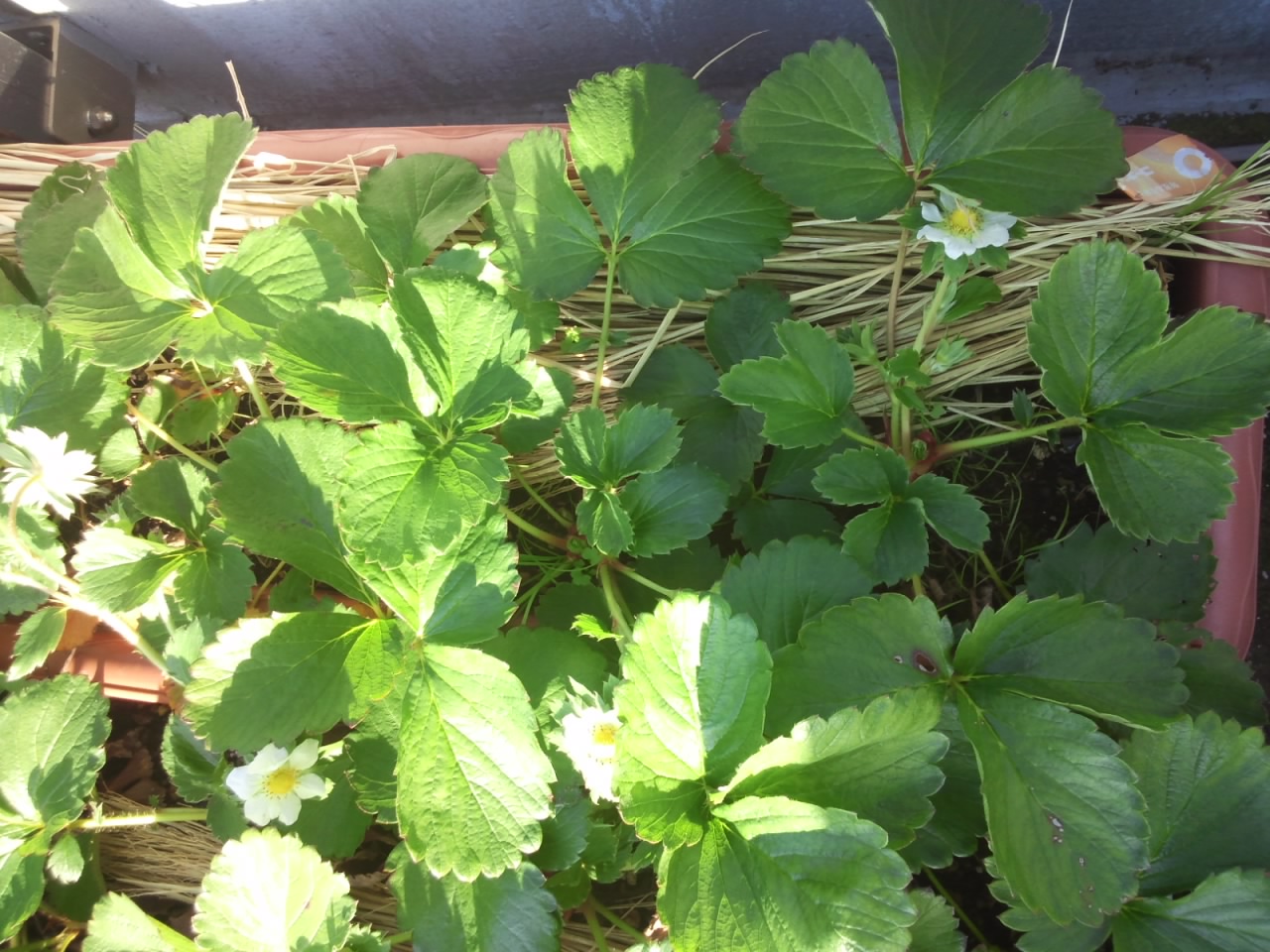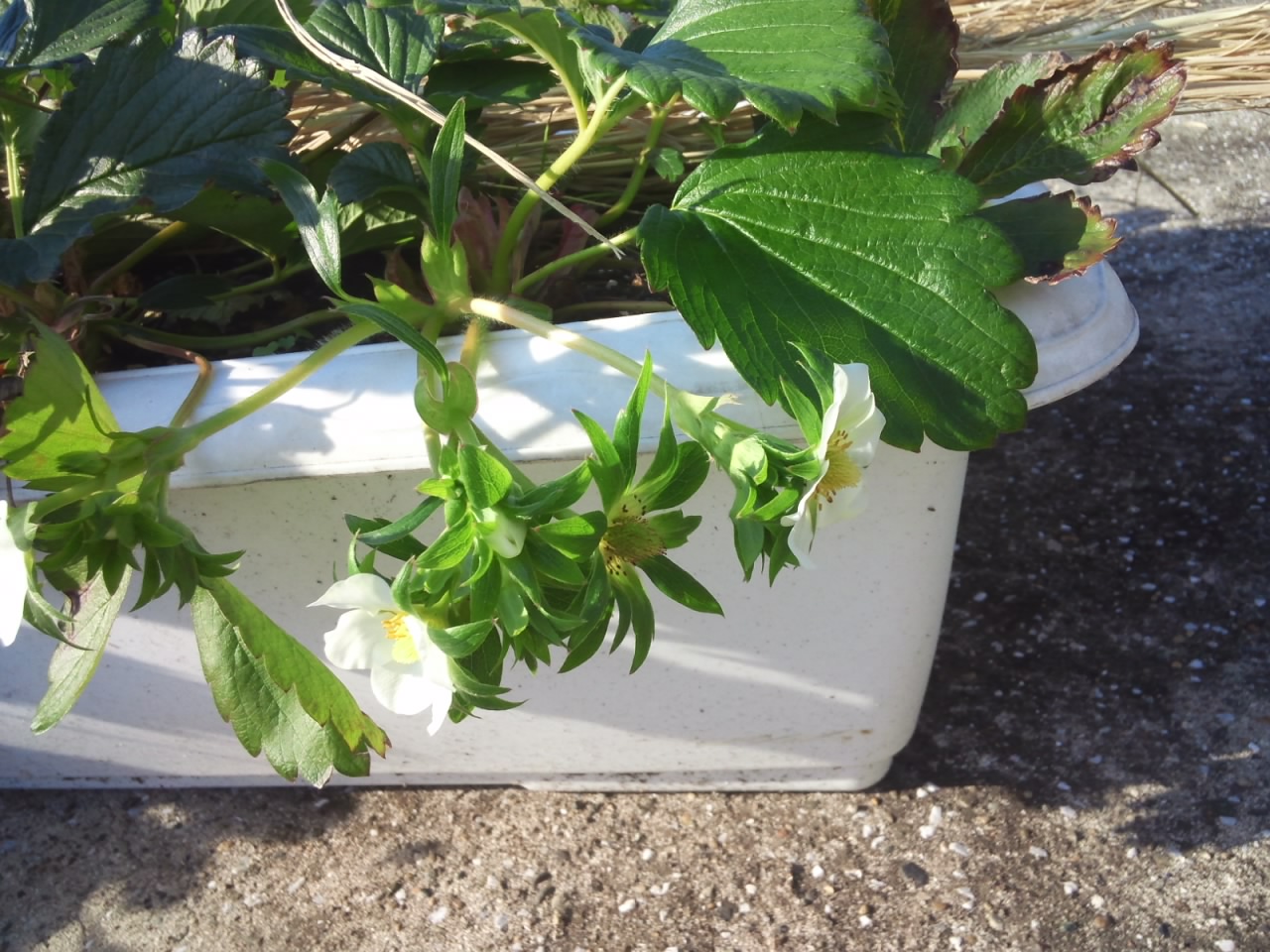 冬に備えて新しいイチゴの苗はまとめていますが 間から沢山の花芽がでてきて