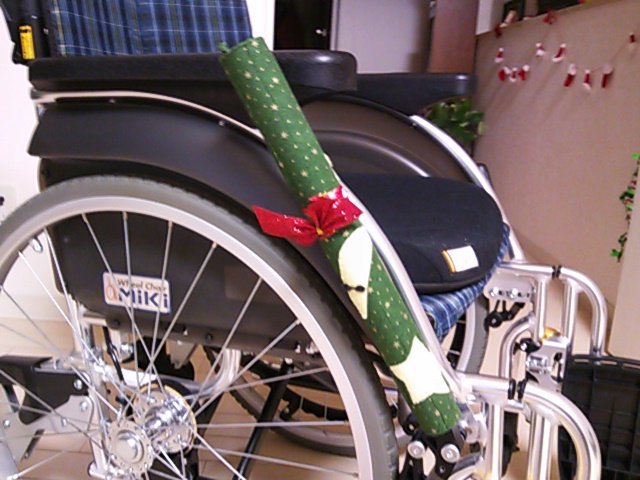 母の麻痺側のブレーキを掛けやすくするためにラップの芯を活用