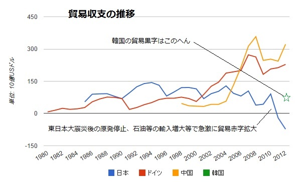 (補足) 脱原発での石油など輸入資源額増大が直に貿易赤字の拡大(図1参照)につながるのは、円安での電力高、原料高が、円安での輸出増大効果を上回ってしまうから。 これは性急な脱原発、原発再稼働阻止で経済全体が非効率化してしまったことによる。