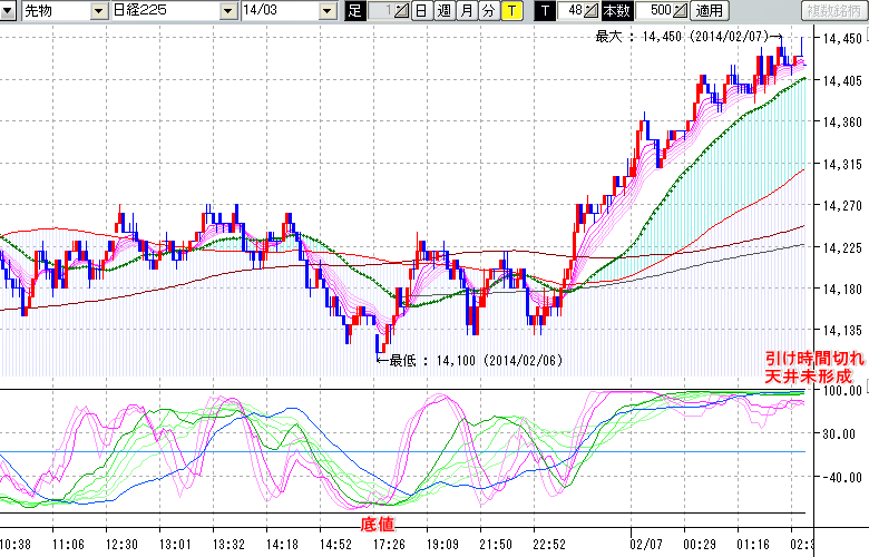 天井 : 引け時間切れ、天井未形成