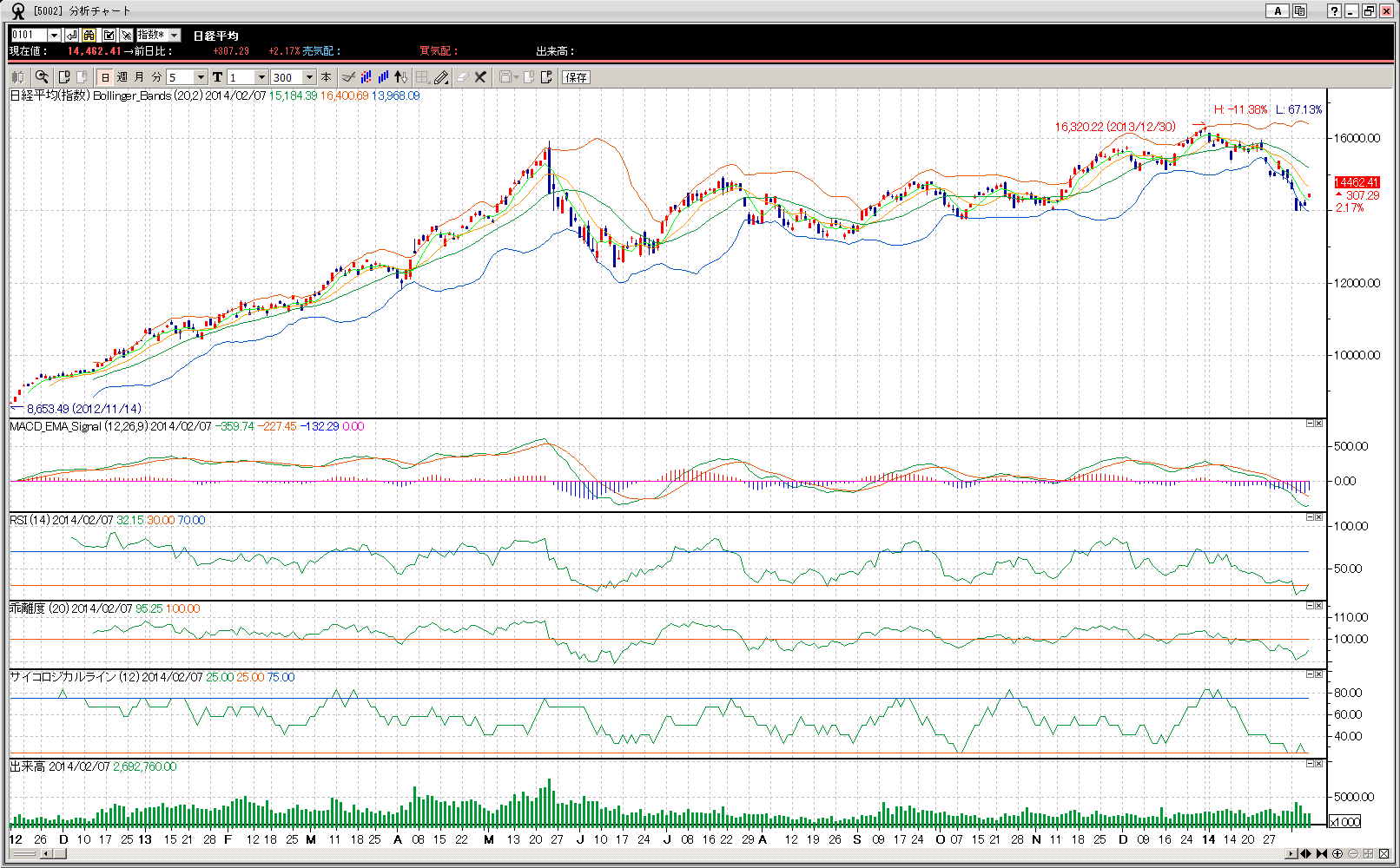 チャートを見てると「02/04 14008.47 ▼610.66」の日