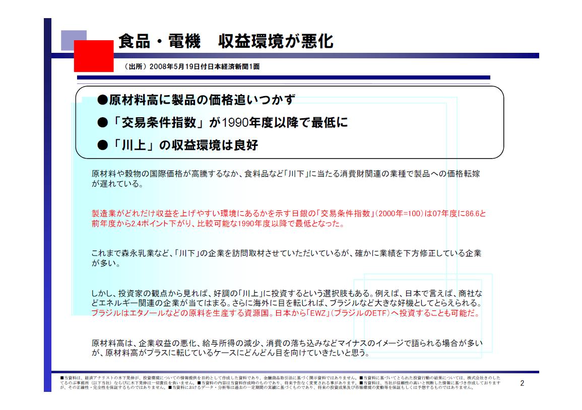 1.食品・電機 収益環境が悪化