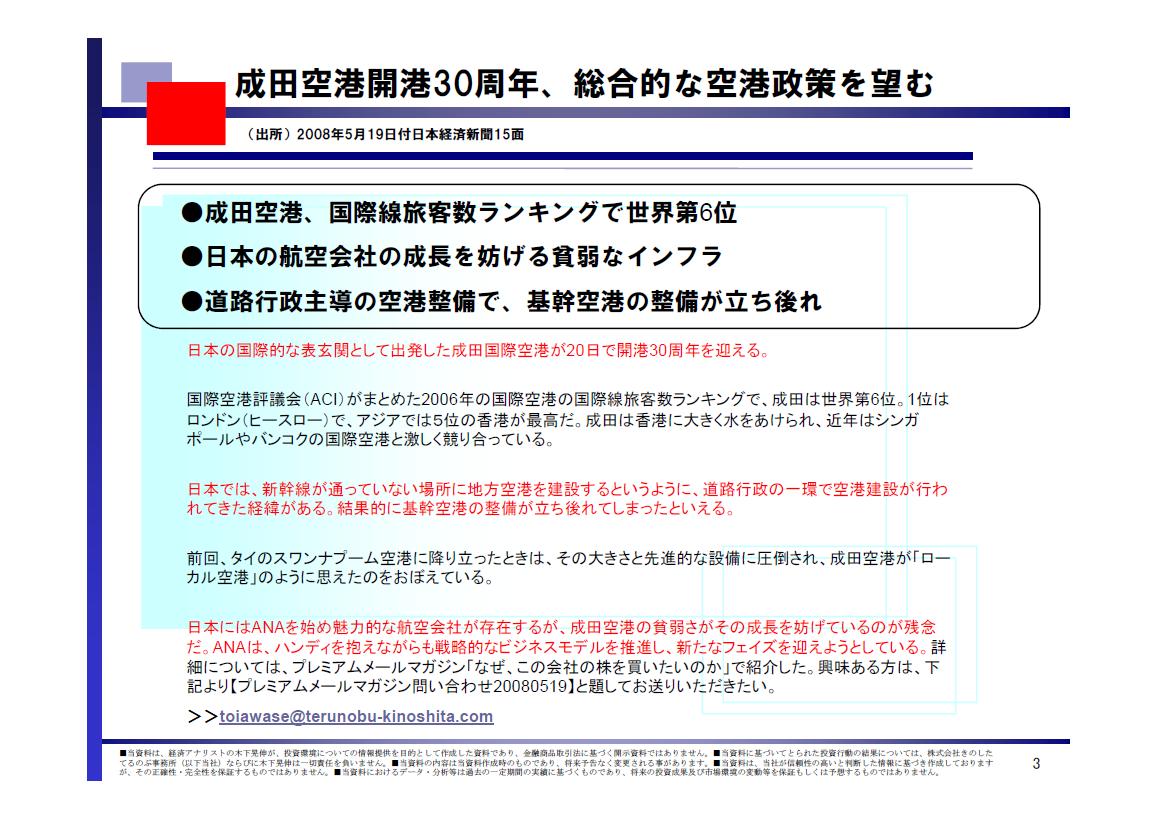 2.成田空港開港30周年、総合的な空港政策を