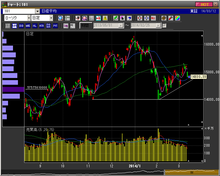 円相場はそれほど円高に動かなかったのだが、先物にまとまった売りが出たようだ。