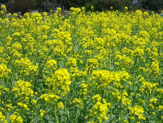 新幹線のガードのあたりにある菜の花畑。周囲は全部宅地。ここもいつまでこのまま残っていられるのだろうか