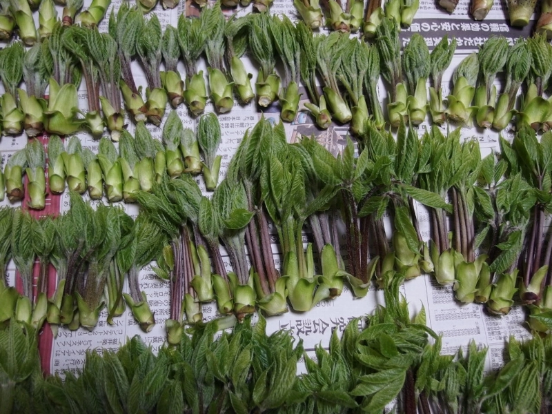 急斜面を登りてっぺんに着くと正しく得物のコシアブラの若木があちこちに生えており、先端の芽は私が来るのを待ってたかのような美味しそうな芽が育ってます