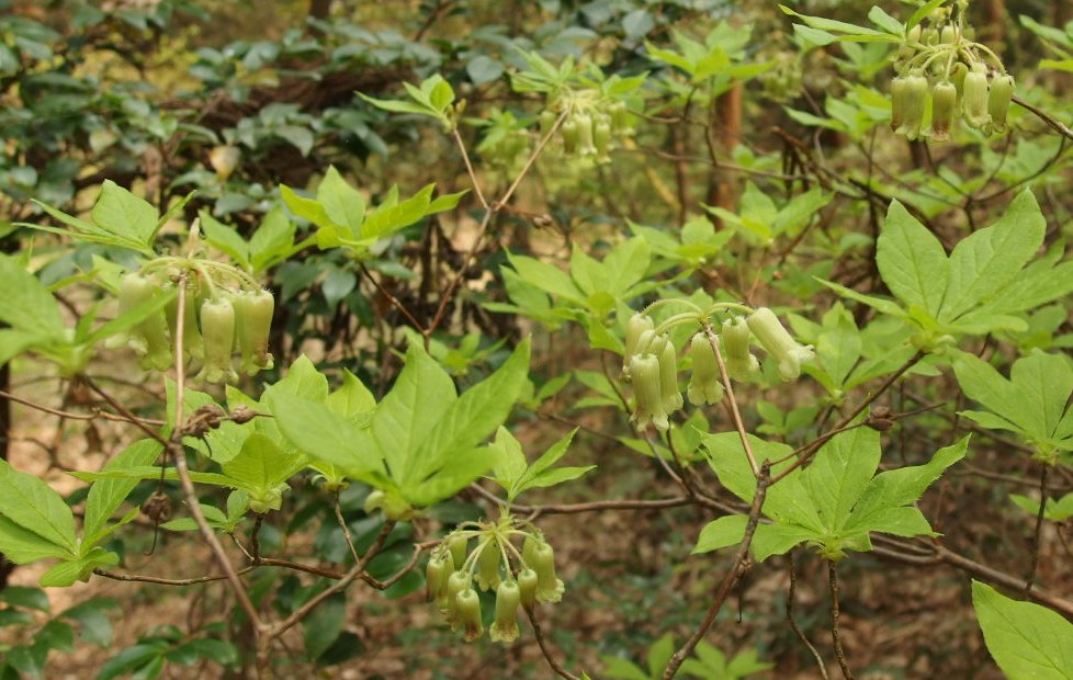 ウスギヨウラク(薄黄瓔珞)の花があちこちに咲いてます