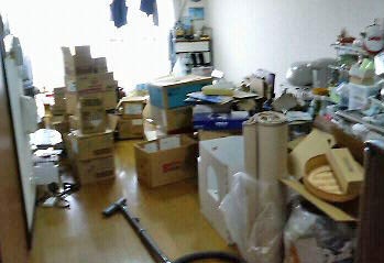 中に置いてあったもの『すべてを処分』することに決定っ♪ゴミ袋に、ポイポイ12袋っ♪ダンボール、バリバリ破いて大きなダンボール箱3箱に寿司詰めですじゃん♪