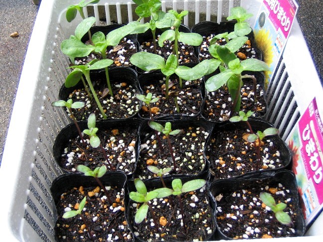 1週間経ちましたが、ココアと食用ヒマワリ比べてもわかりますが、食用ヒマワリでかい。