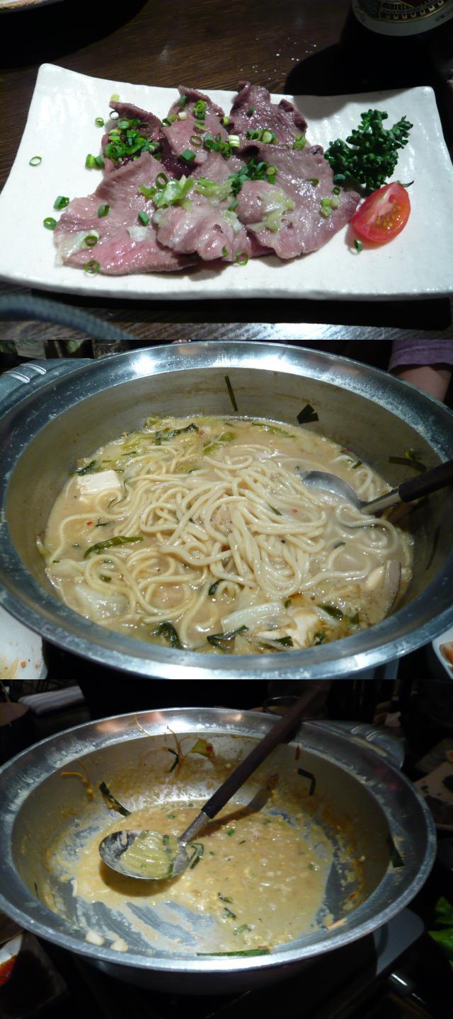 あっ、牛タンの塩焼きも来た♪(写真右上)そうこうしているうちに、〆のチャンポン(写真右中央)っと空っぽになったオジヤ(写真右下)