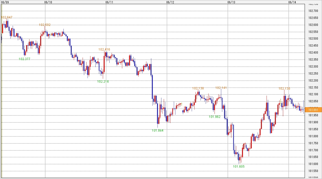 6月9日~6月13日の週。ドル円相場は1ドル=101.60~102.64円
