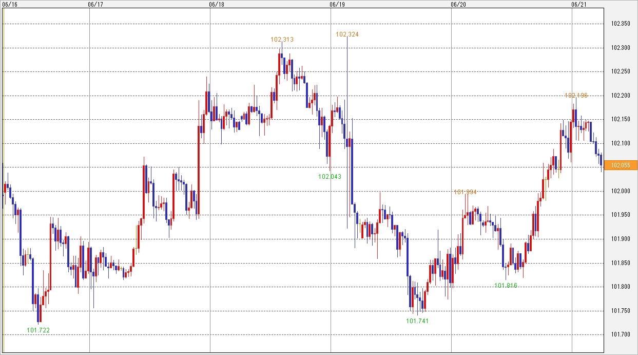 6月16日~6月20日の週。ドル円相場は1ドル=101.72~102.32円
