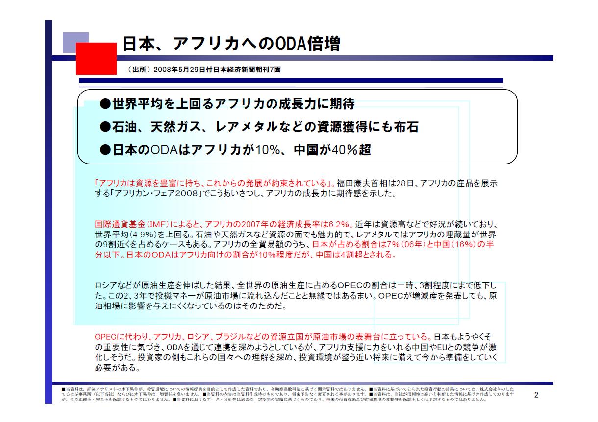 1.日本、アフリカへのODA倍増