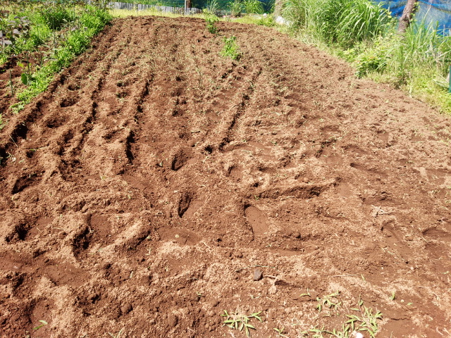 玉ねぎが見えなくなったので収穫してその後を耕した