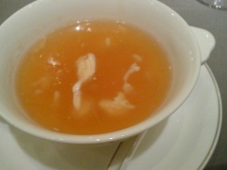 なんとなく、フカヒレスープって、比較的スープの透明度が高いというか、あっさりしているイメージだったのですが、こちらのカニ肉入りフカヒレスープは、とろみ加減があるスープ。