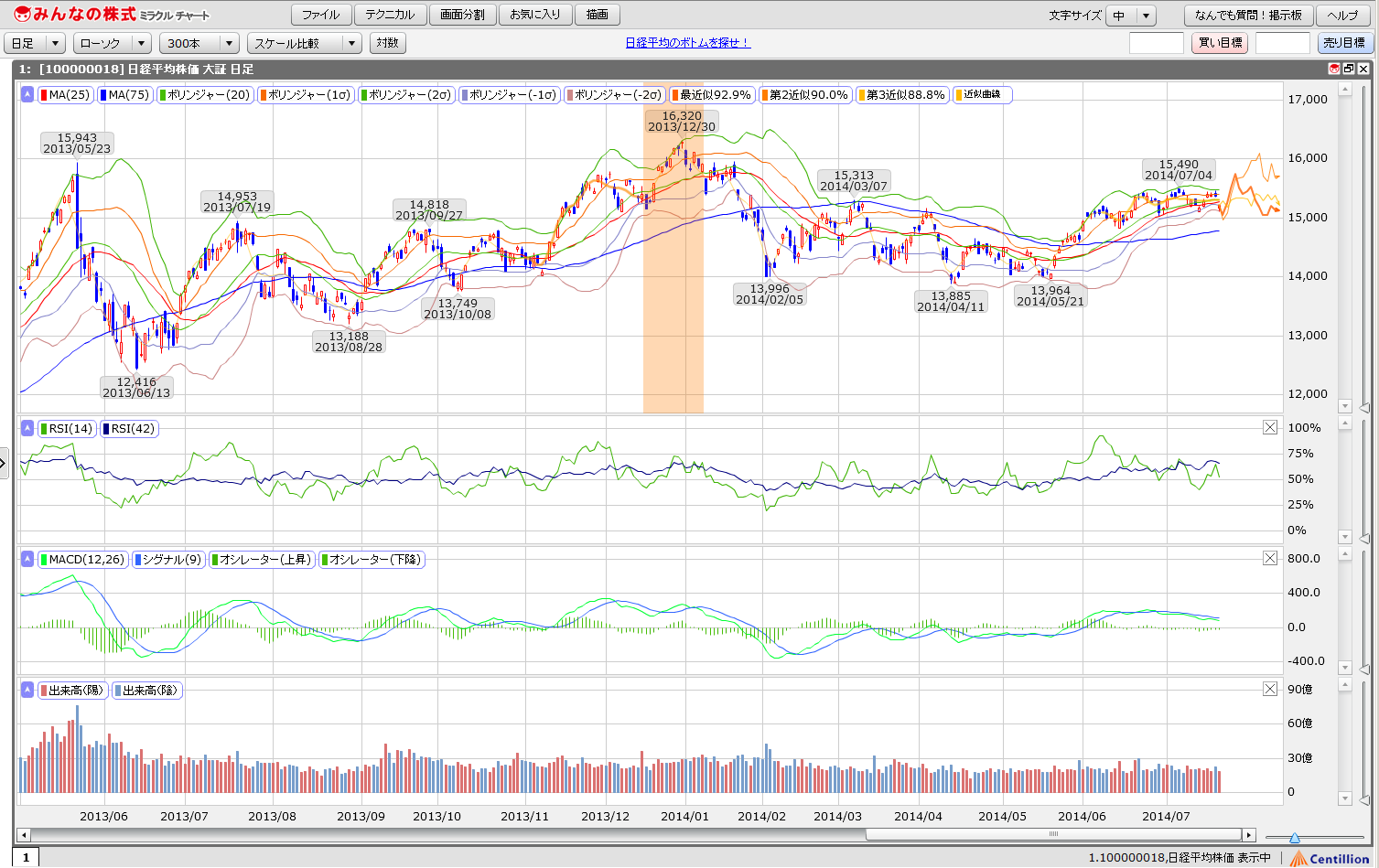 【解説!?】[日経平均 15215.71(15164.04)]()は1週間前