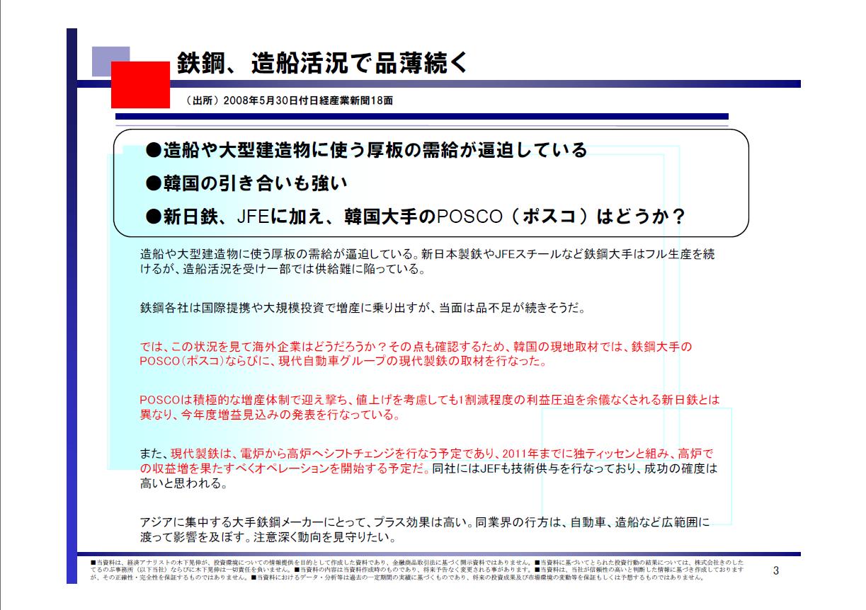●新日鉄、JFEに加え、韓国大手のPOSCO(ポスコ)はどうか?