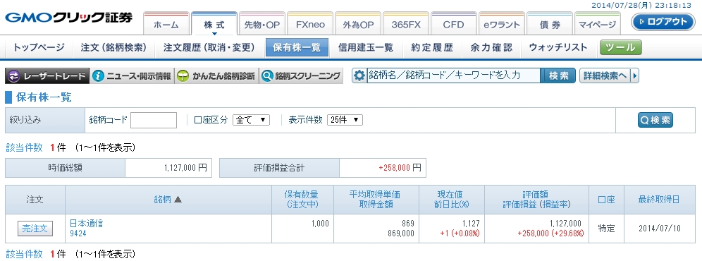 保有株状況@GMOクリック証券:含み損益+257,000円