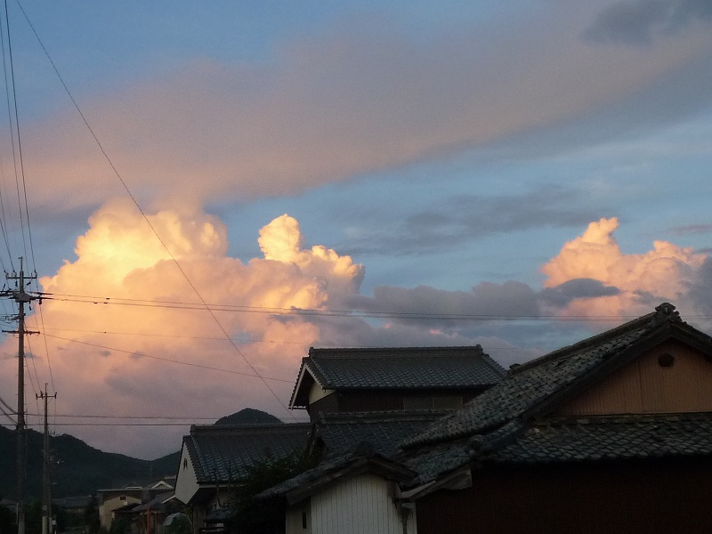 1万mの高さはありそうだね。夕陽を浴びて赤く染まっていた。高松からの帰路に撮影。