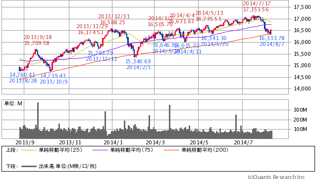 週末の紐育ダウは+$185と大きく反発。左側ダウの日足チャートで見ればお分かりの通り、200日移動平均線が強力なサポートになっており、今回もこのラインが守護神となったと申せましょう。