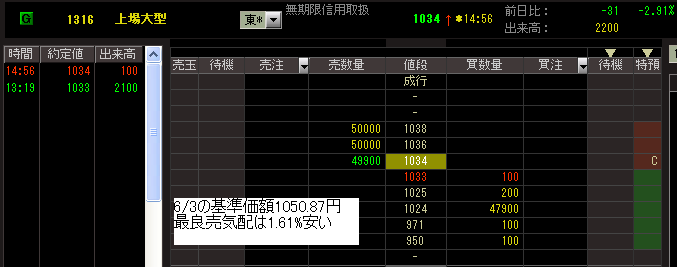 今日は大型ETFの売り気配がフェアバリューより安い状態が続いていました。大引けではNAVより1.61%安でした。