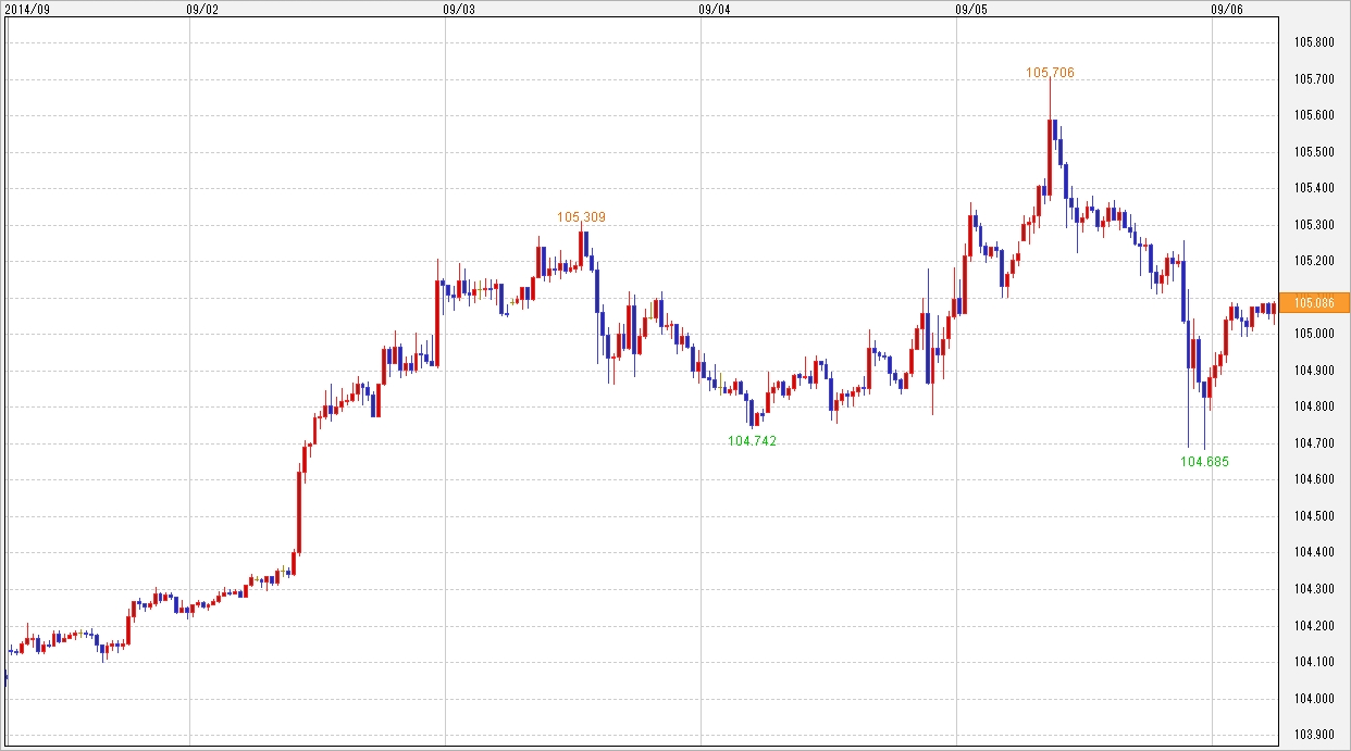 9月1日~9月5日の週。ドル円相場は1ドル=104.12~105.70円