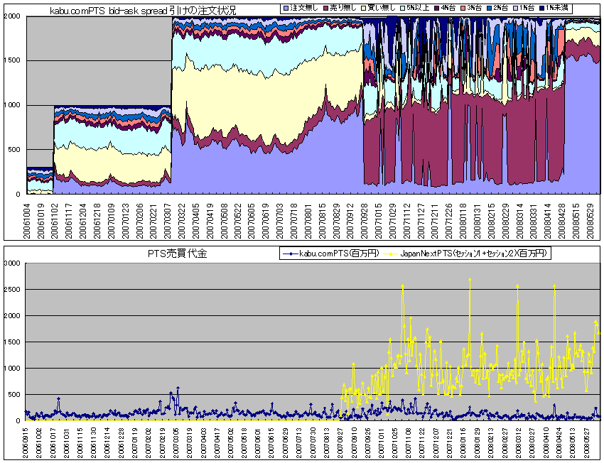 kabu.comPTSの引けの注文状況と、売買代金のグラフです。