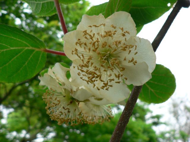 キュウイの花、一つひとつ見ると清潔感があって可愛いらしいです。