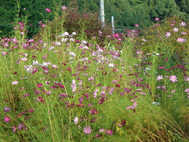 畑のコスモスは、化粧品やダイエット商品のいわゆる「使用前」と「使用後」みたいですね。台風前とその後の姿ですか。酷いことになっていますね。