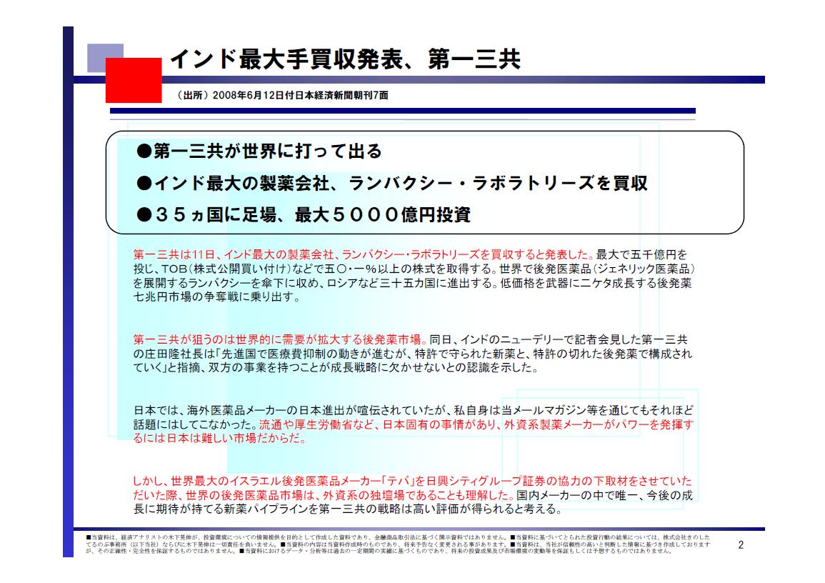 【投資脳のつくり方】インド最大手買収発表、第一三共