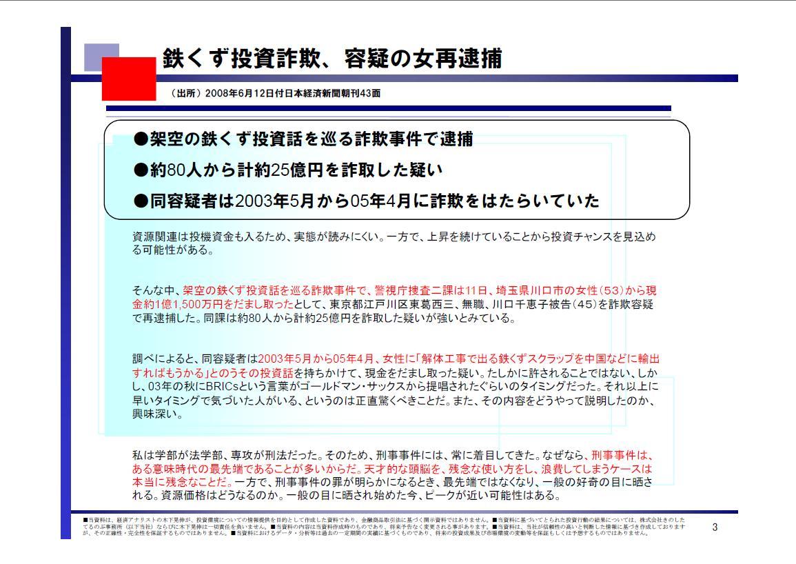 そんな中、架空の鉄くず投資話を巡る詐欺事件で、警視庁捜査二課は11日、
