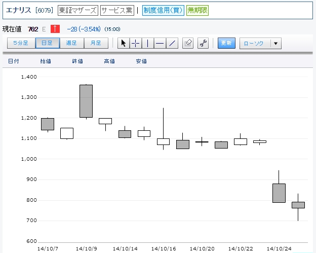 リバ狙いでエナリス(6079)を買ってみました!