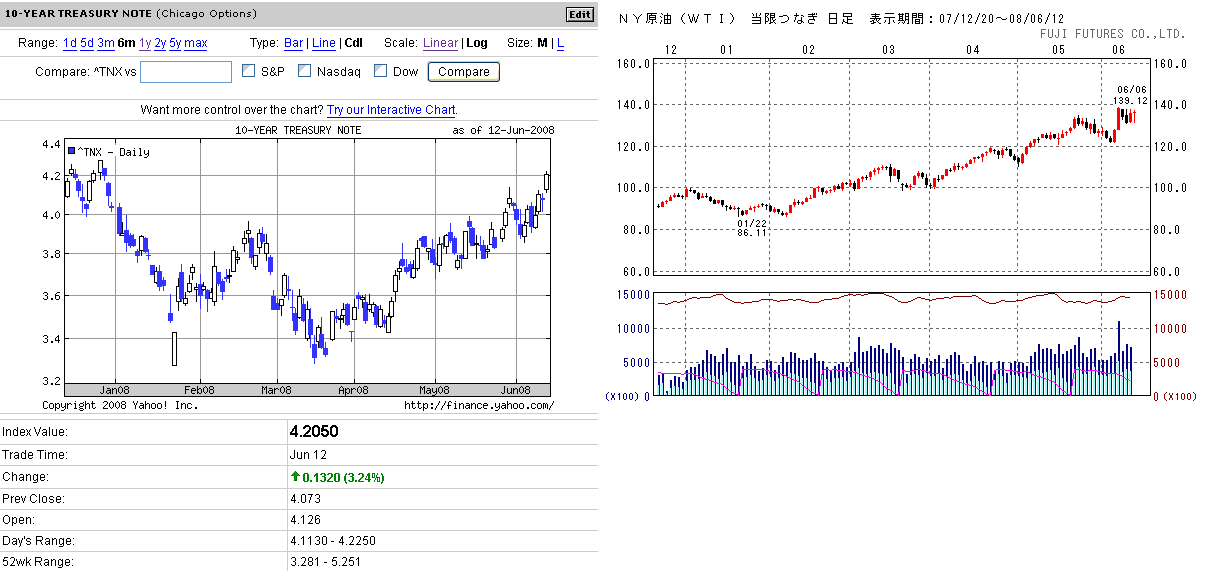 5月小売売上高が市場予想を上回ったことから、米株価指数は反発しました。ヤフーとマイクロソフトの交渉が不成立に終わったことから、マイクロソフト株は上昇、ヤフー株は下落しました。長期金利は上昇。住宅ローン金利も結構上がってきています。原油価格は高止まり。