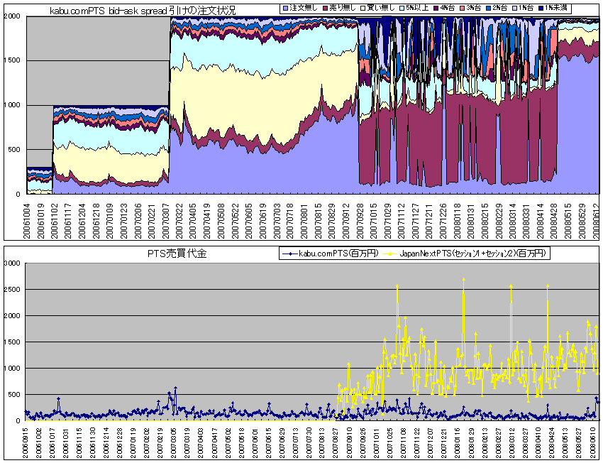 kabu.comPTSの引けの注文状況と、売買代金のグラフです。