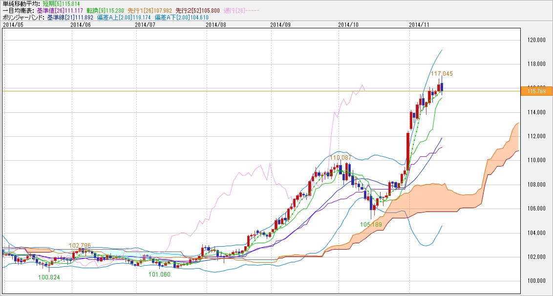 もっとも117円台にタッチした後は、材料出尽くし感もあって急落しています。結局、噂で買って事実で売るというような形となっていますね(b´∀`)ネッ!