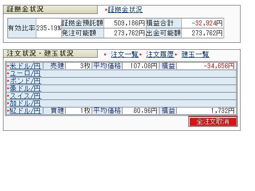 今後どうしようかと悩むが、輸出関連株のヘッジとして、もう少し売りで進めようと思う。