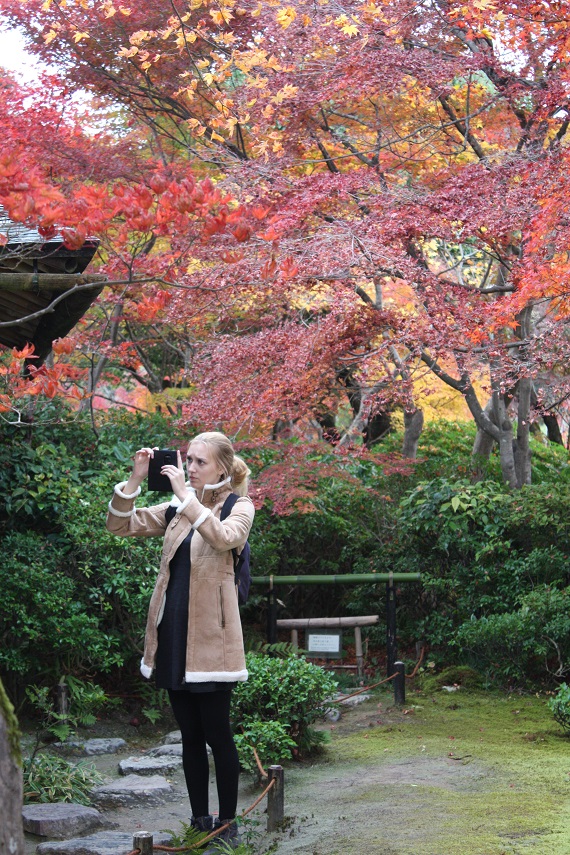 金髪美女のエリーちゃんと一緒に大内山荘の紅葉を愛でる至福の時