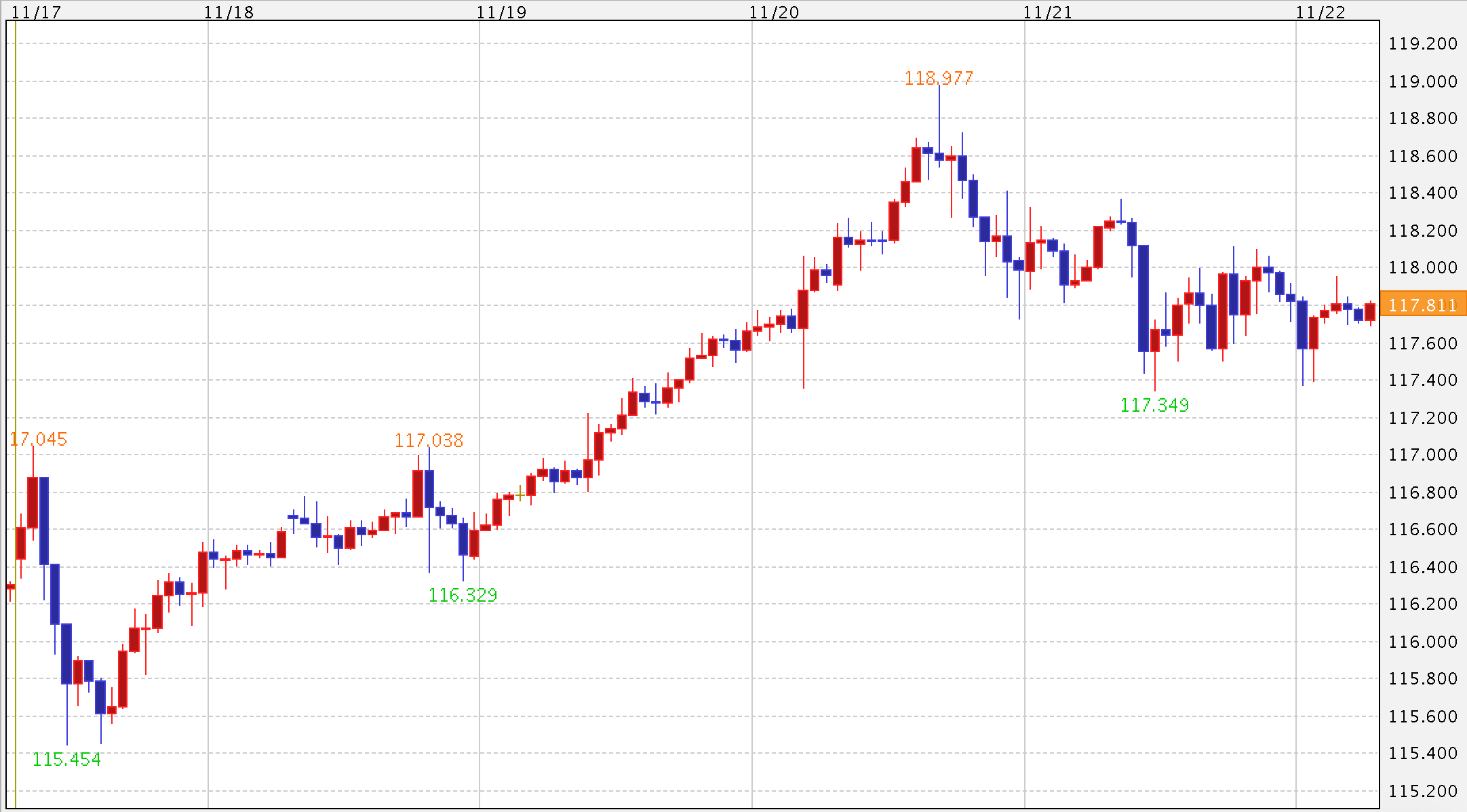 11月17日~21日の週。ドル円相場は1ドル=115.45~118.97円