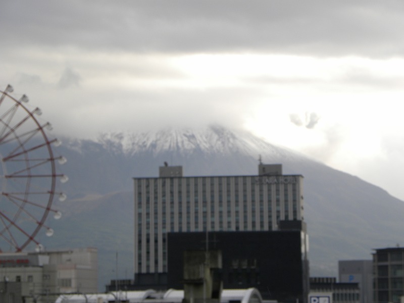 鹿児島では桜島が冠雪するのは年に4.5かいだけですが