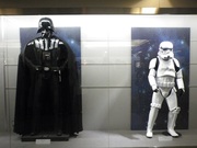 ライトアップされた駅舎です。もっといろいろ撮りたかったけど、警備スタッフの人が「立ち止まらない下さい」とやたらにせかすもんで、マトモに撮れていません(半分は言い訳)。後ろを見ても誰もいないのになあ・・・