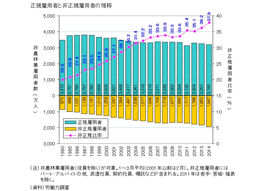 増大する非正規雇用は女性や高齢者の社会進出、雇用増大