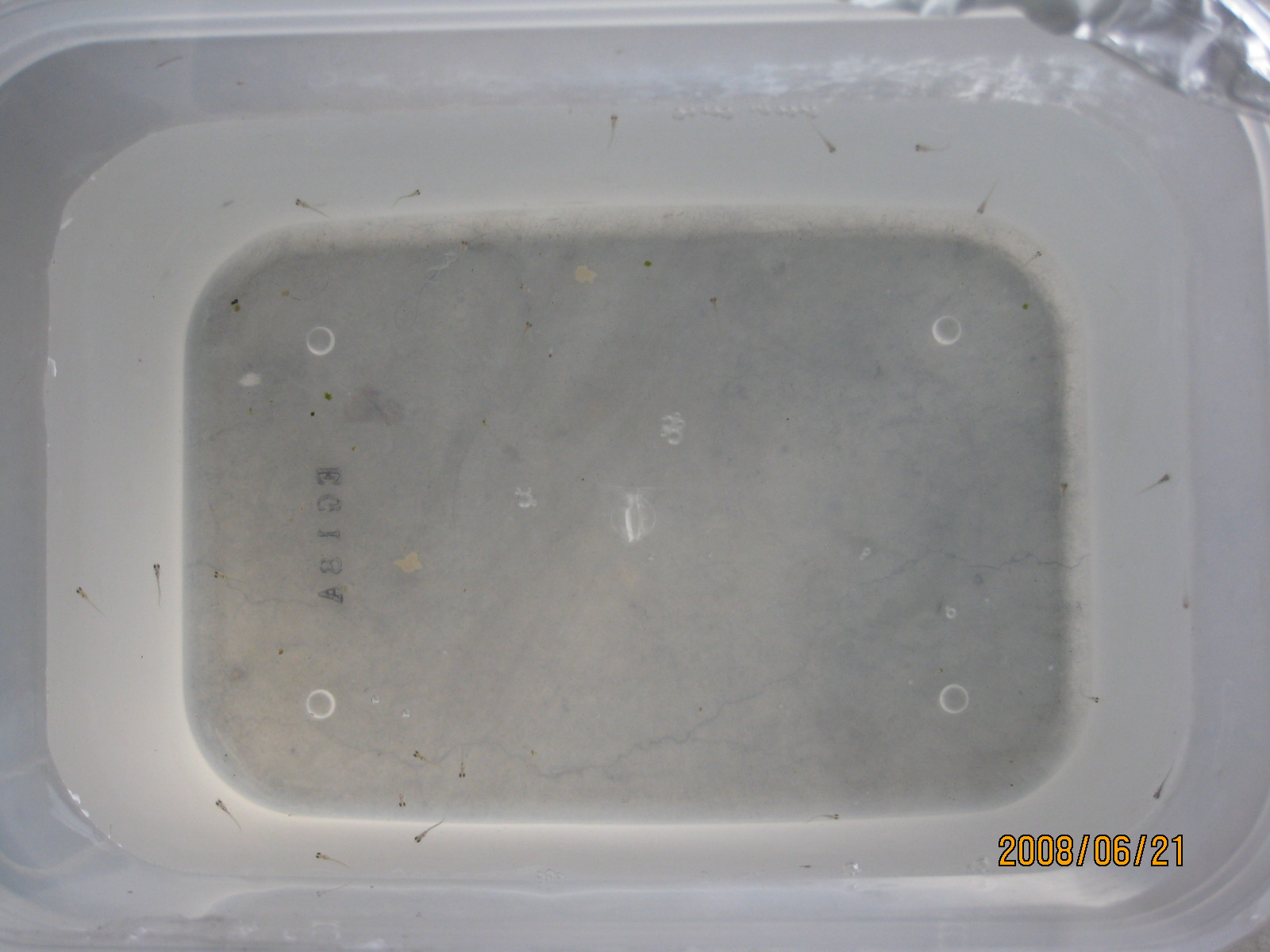 原因は、たぶん水槽の水が、成魚と稚魚を