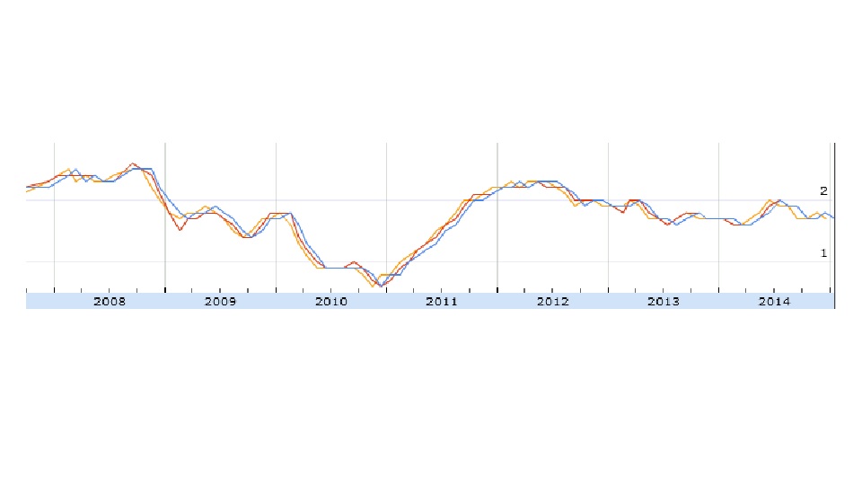 翻って日本は黒田日銀になってこの春で2年経つのに1%程度のインフレ率(コアコアCPI,増税影響除く)。