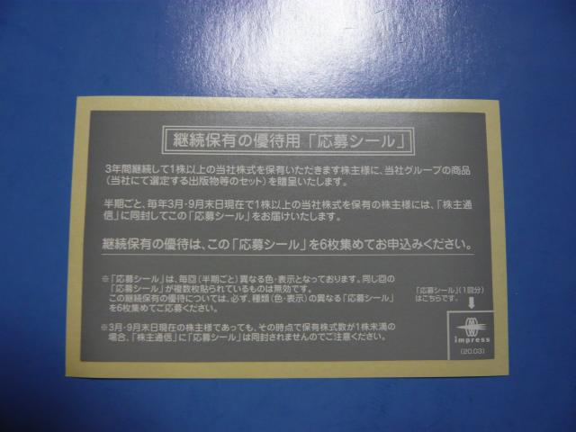 また3月末、9月末には写真のシールが配布されこのシールを6期(6枚)(3年連続)で集めて送付するとインプレスグループの書籍セットがもらえるそうです。